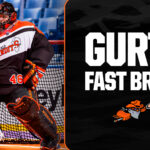Those big minutes turned into positive numbers while playing junior with Orangeville. In ’24, Evan had a goals-against of 8.56 and a save percentage of .837. This past summer, the numbers changed to 6.3 goals-against and an .858 save percentage.